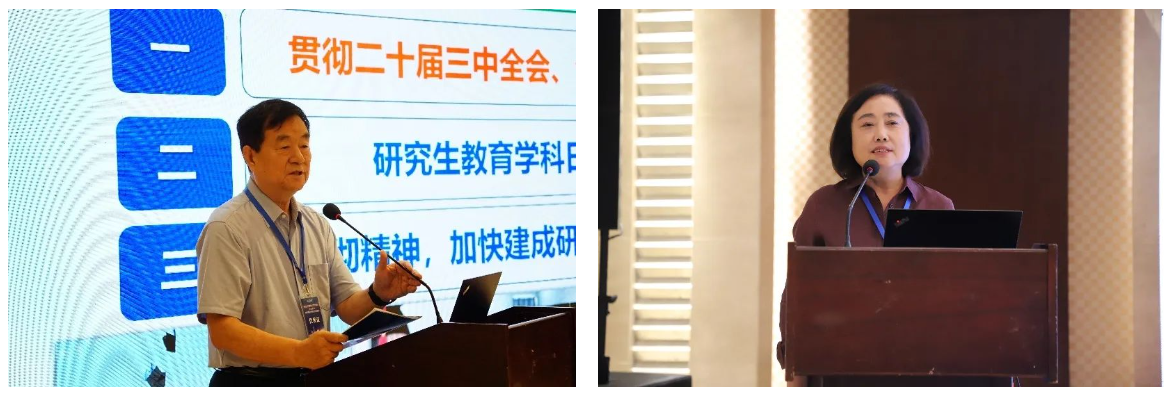 丁雪梅教授随后主持了大会主旨报告环节。学会副会长、研教委顾问、北京理工大学研究生教育研究中心主任王战军教授作了主题为《贯彻“中央决定”加快研究生教育学科建设》的报告,从二十大三中全会对于教育的指示精神开始讲起,立足国际国内的研究生教育学科发展情况给出了多个建设性建议。研教委主任、清华大学教育研究院党委书记刘惠琴研究员作了主题为《新时代研究生教育高质量发展》的报告,介绍了研究生高质量发展内涵的“三新”,讨论了教育、科技、人才协同发展的研究生教育新态势,并介绍了一系列研究生教育一体化推进的高质量发展案例。研教委副主任、天津大学闫广芬教授作了《科学与人文的双重变奏—新工科深入推进的价值旨归》的主题报告,回顾了新工科建设的成效,她强调科技与人文的关系是富有深刻内涵的现实的根本问题,并倡导未来的科技教育应当更加重视科技与人文的统一。
