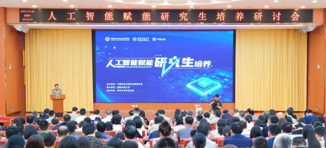 4月25日至27日,人工智能赋能研究生培养研讨会在国防科技大学成功召开。大会由中国学位与研究生教育学会主办,国防科技大学承办,清华大学学堂在线协办。来自全国研究生教育和人工智能领域的领导、专家、学者出席大会。中国学位与研究生教育学会、湖南省教育厅、国防科技大学有关领导与会。