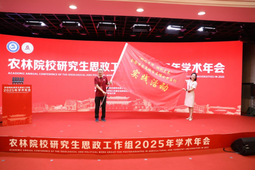 今年,教育部学位与研究生教育发展中心组织主题为“感悟新时代伟大变革,强化研究生思政引领”2025年全国研究生新时代伟大变革暑期实践活动,周学军为全国涉农高校授旗,马紫威作为涉农高校代表接受旗帜。