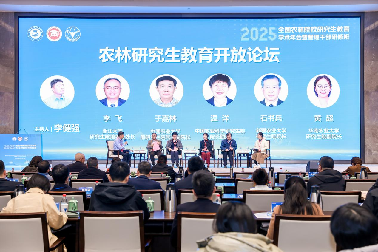 为推动提升高等农林教育对教育强国建设的支撑力,提升管理干部队伍的管理水平和能力,12月5日至8日,由中国学位与研究生教育学会农林学科工作委员会、农业专业学位工作委员会主办,浙江大学农业与生物技术学院承办的2025年农林院校研究生教育学术年会暨管理干部研修班在杭州顺利举办。本次会议以“推进融合发展、建设教育强国、服务乡村振兴”为主题,汇聚全国68所农林院校的近200名专家学者及研究生教育一线骨干,聚焦农林研究生教育面临的机遇挑战,探讨瓶颈破解之道,为深化教育教学改革、强化农业强国建设支撑提供新思路与新路径。