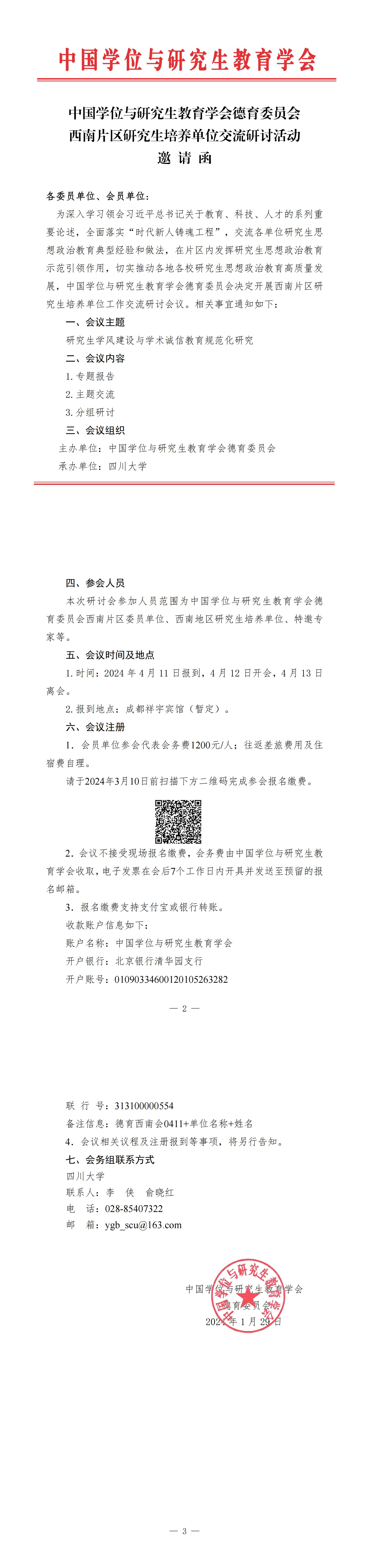 会议邀请|中国学位与研究生教育学会德育委员会西南片区研究生培养单位交流研讨活动邀请函