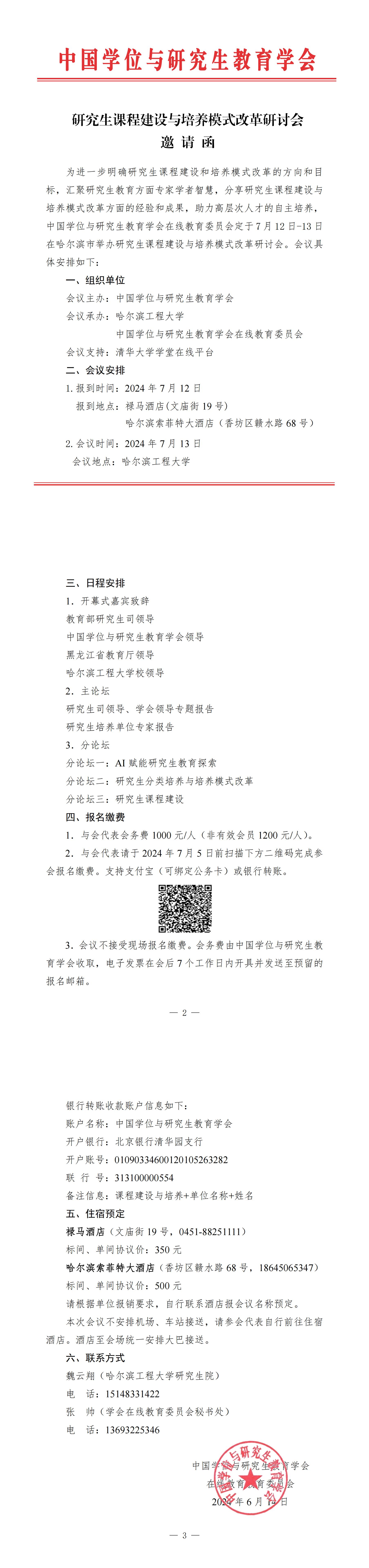 【邀请函】研究生课程建设与培养模式改革研讨会0615
