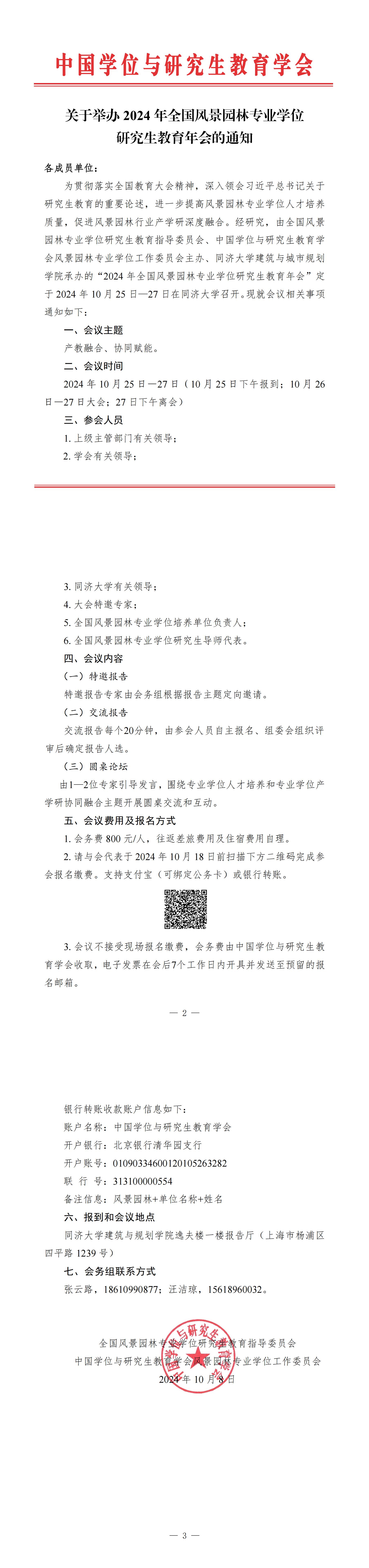 关于举办2024年全国风景园林专业学位研究生教育年会的通知