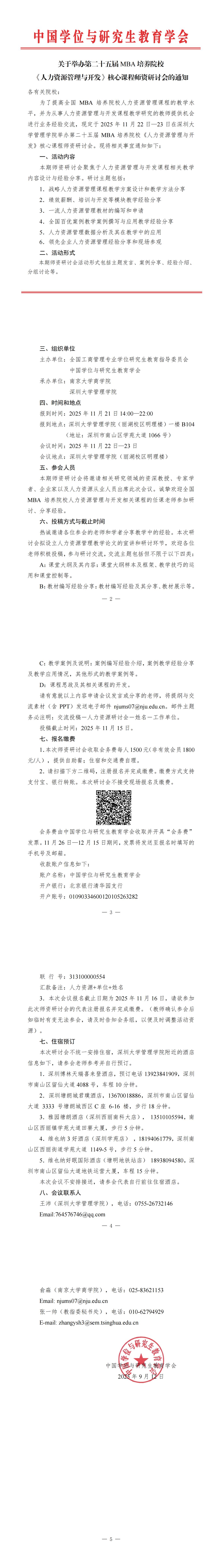 会议邀请|关于举办第⼆⼗五届MBA培养院校《⼈⼒资源管理与开发》核⼼课程师资研讨会的通知