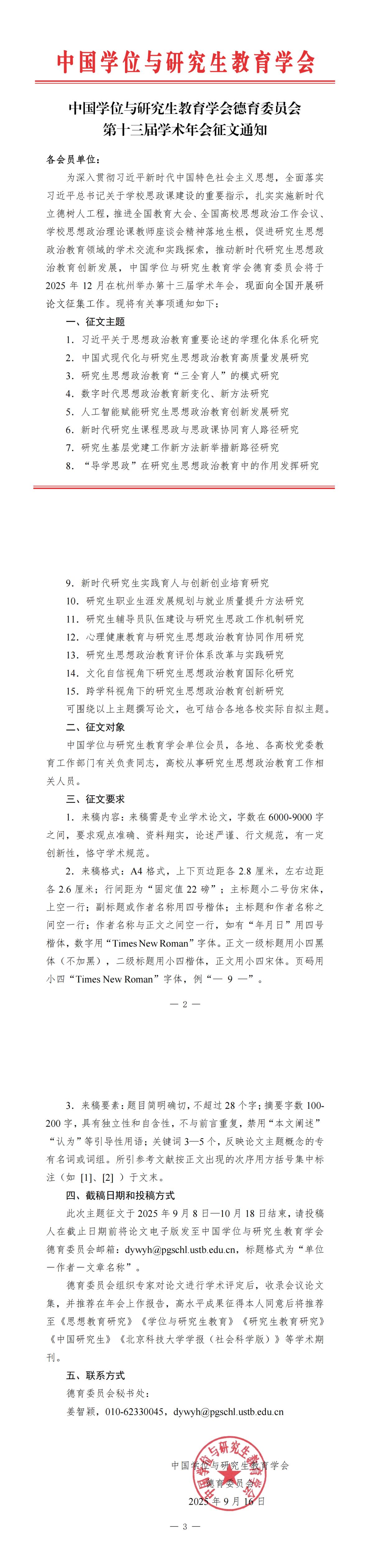 征文通知|中国学位与研究生教育学会德育委员会第十三届学术年会征文通知