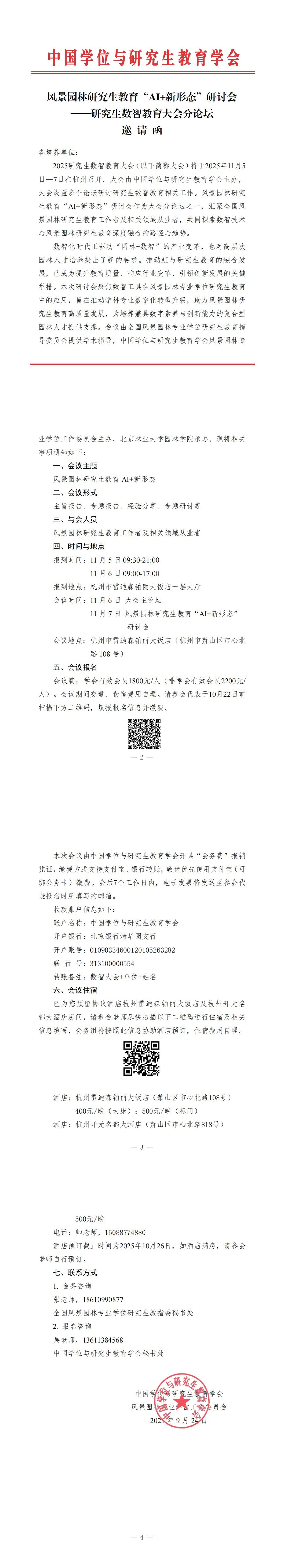 风景园林研究生教育“AI+新形态”研讨会邀请函