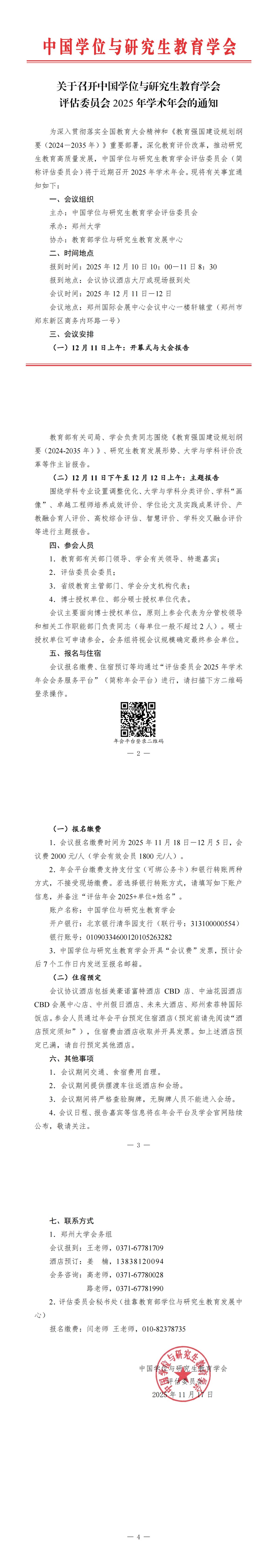 关于召开中国学位与研究生教育学会评估委员会2025年学术年会的通知