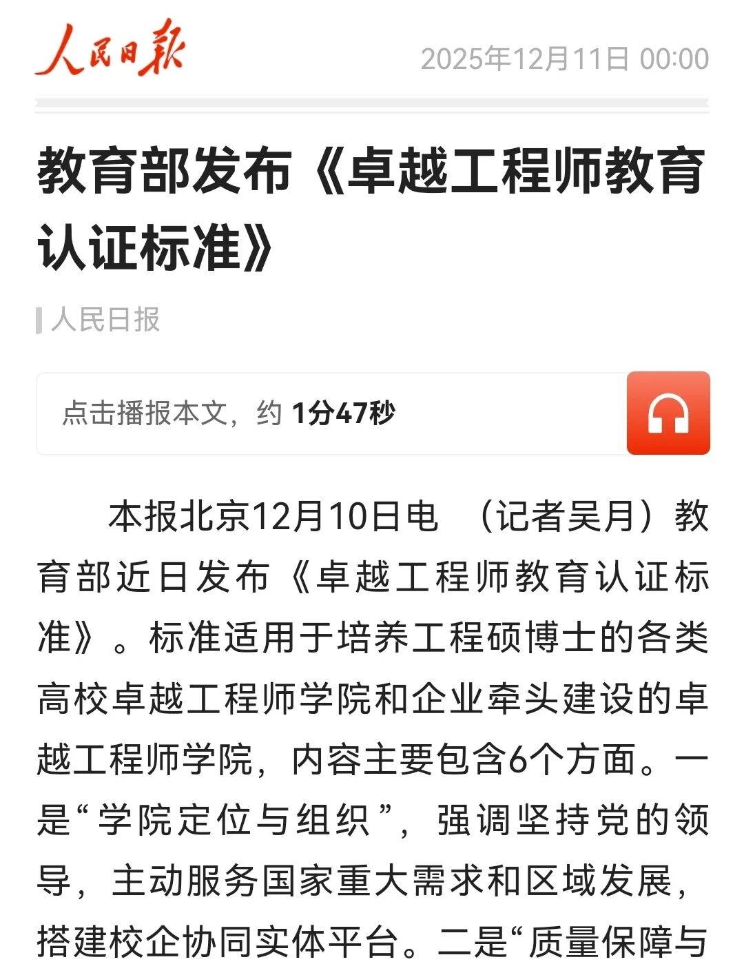 据悉,为打造中国特色卓越工程师培养体系,教育部不久前发布了《卓越工程师教育认证标准》。
