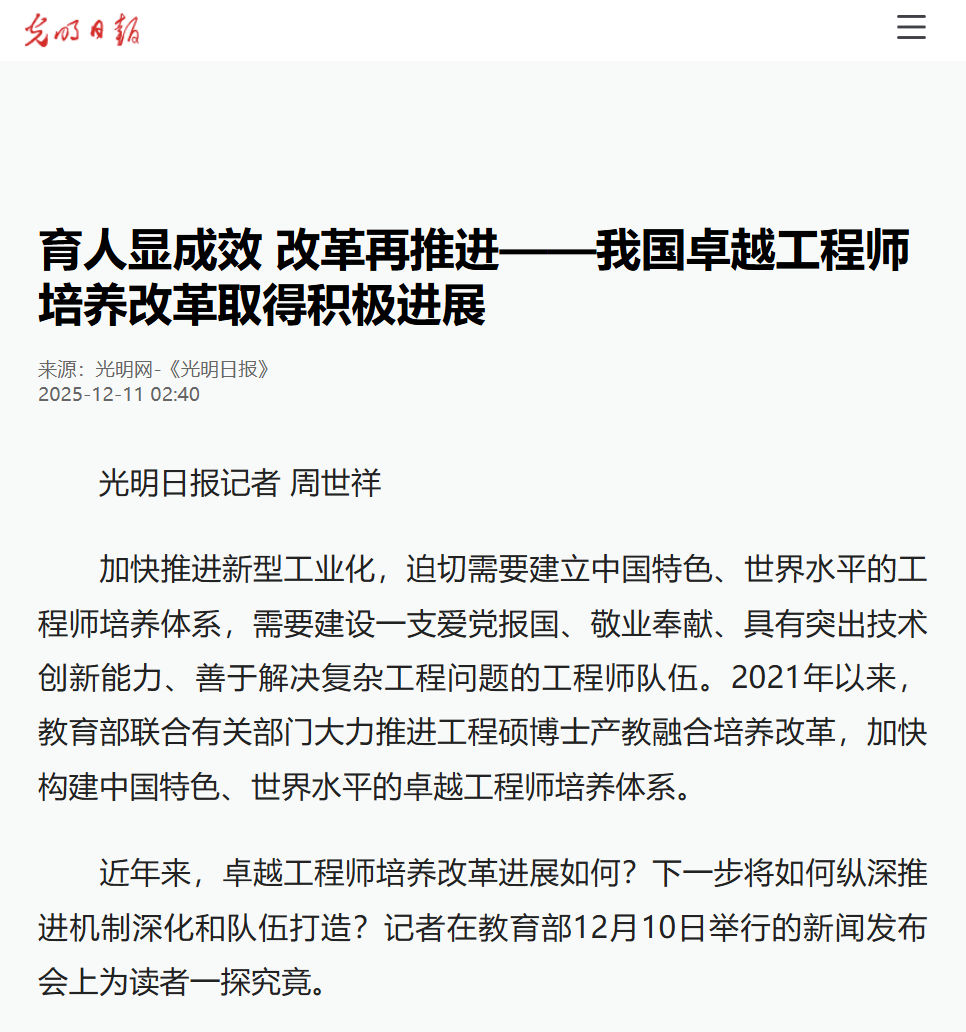 成建制、大规模!我国卓越工程师培养改革取得积极进展